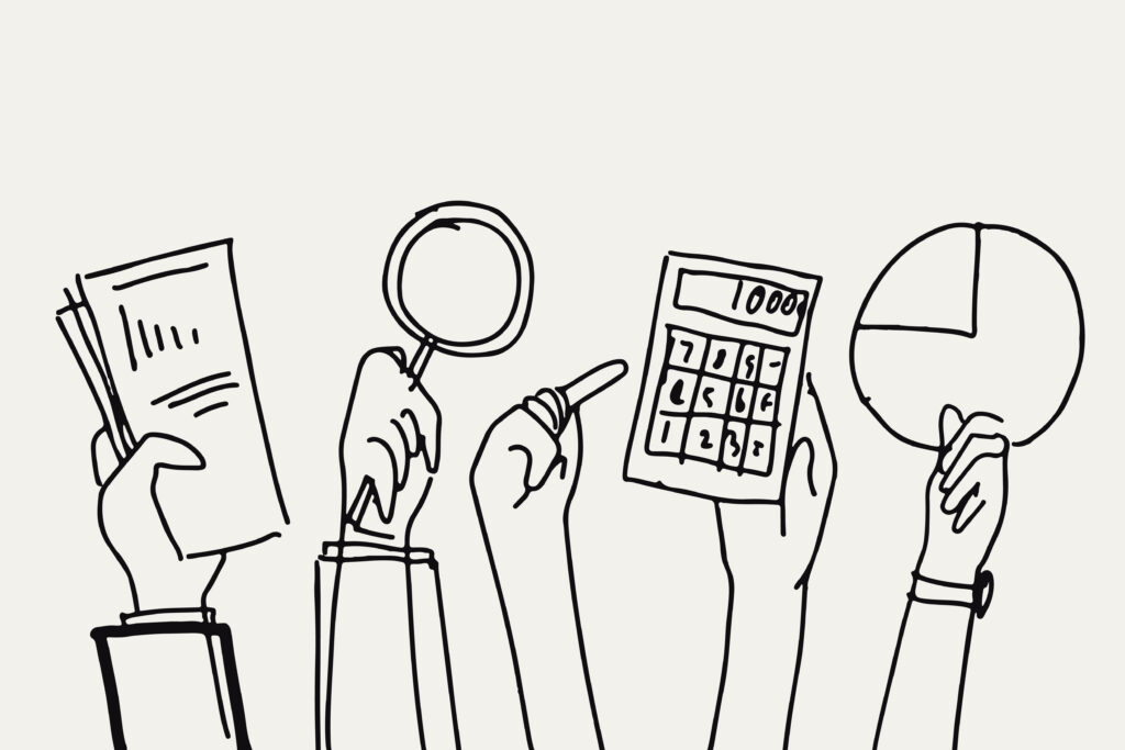 Business finance doodle vector hands holding objects